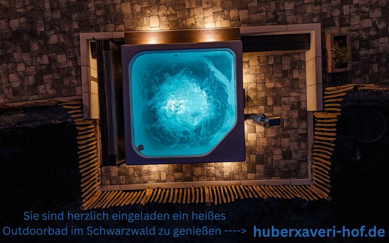 Quadratisches Badefass im Schwarzwald – Exklusives Wellness-Erlebnis am Huber-Xaveri-Hof in Ottenhöfen